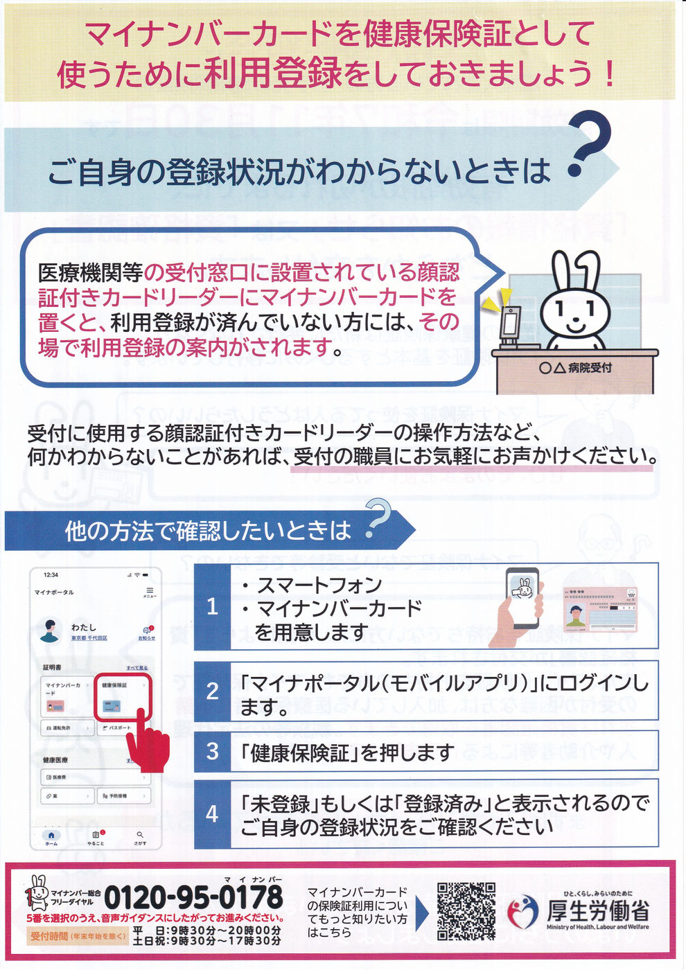 マイナンバーカード保険証と一緒に病院にお持ちください。